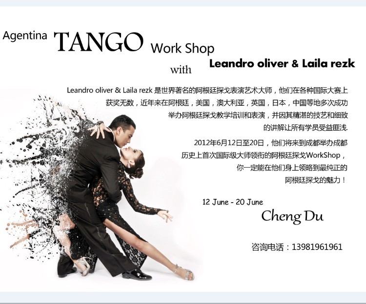 現在國外,阿根廷探戈已成為高端人士不可缺少的社交方式。它能展現您優雅的內心和高素質。因此,中心誠摯地歡迎廣大朋友能來到玫瑰舞蹈培訓中心參觀、學習阿根廷探戈。這里將帶您走進阿根廷文化,聆聽純正的探戈音樂,感受來自阿根廷本土別樣的探戈風情。